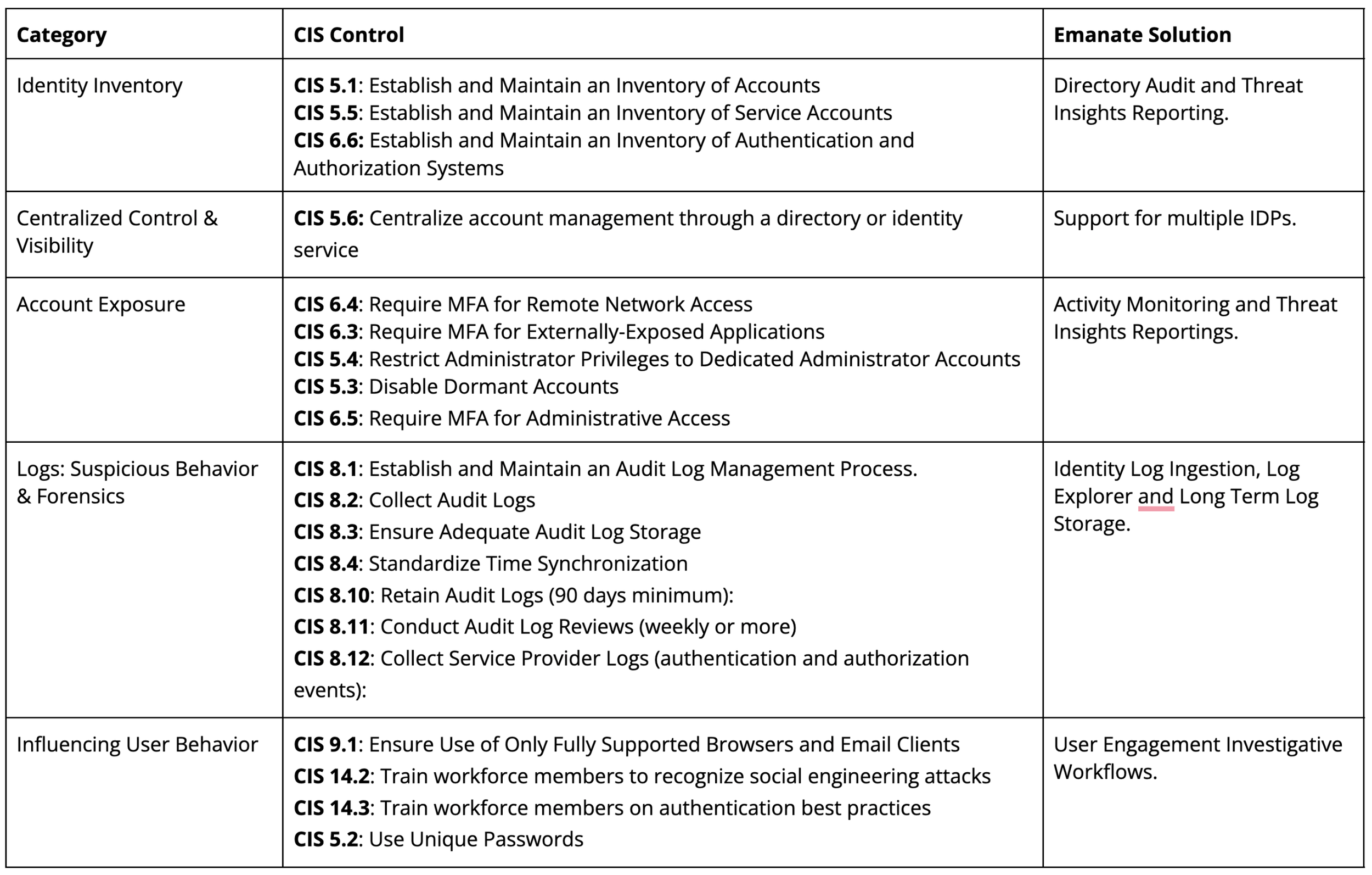 The following sections will describe certain product and feature categories offered by modern identity security solutions and show you how they map to specific controls in the CIS framework. We’ve provided some additional commentary in the next section to help clarify how these are relevant to each CIS control. If you’re only interested in seeing a direct CIS control mapping, feel free to jump straight to our CIS Mapping Matrix (Navigate to the end of this post).